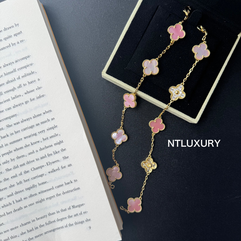 Shell Girl & Shining Leaves Bracelet (Pink)