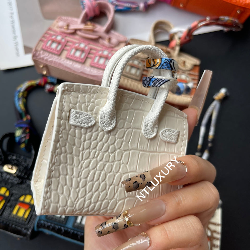 - This mini bag can hold your earphones, keys, lipstick, and more. It can also carry your charm, and can even be worn as an accessory on your bag or keys.