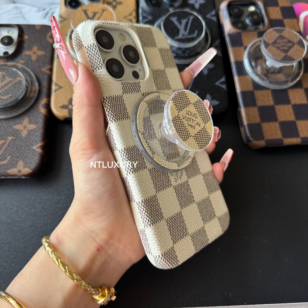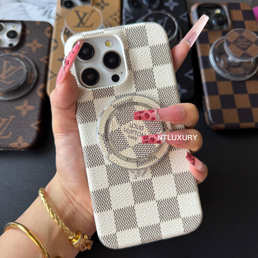 Traditional Love Phone Case with MagSafe Holder For iPhone (White Latticed)