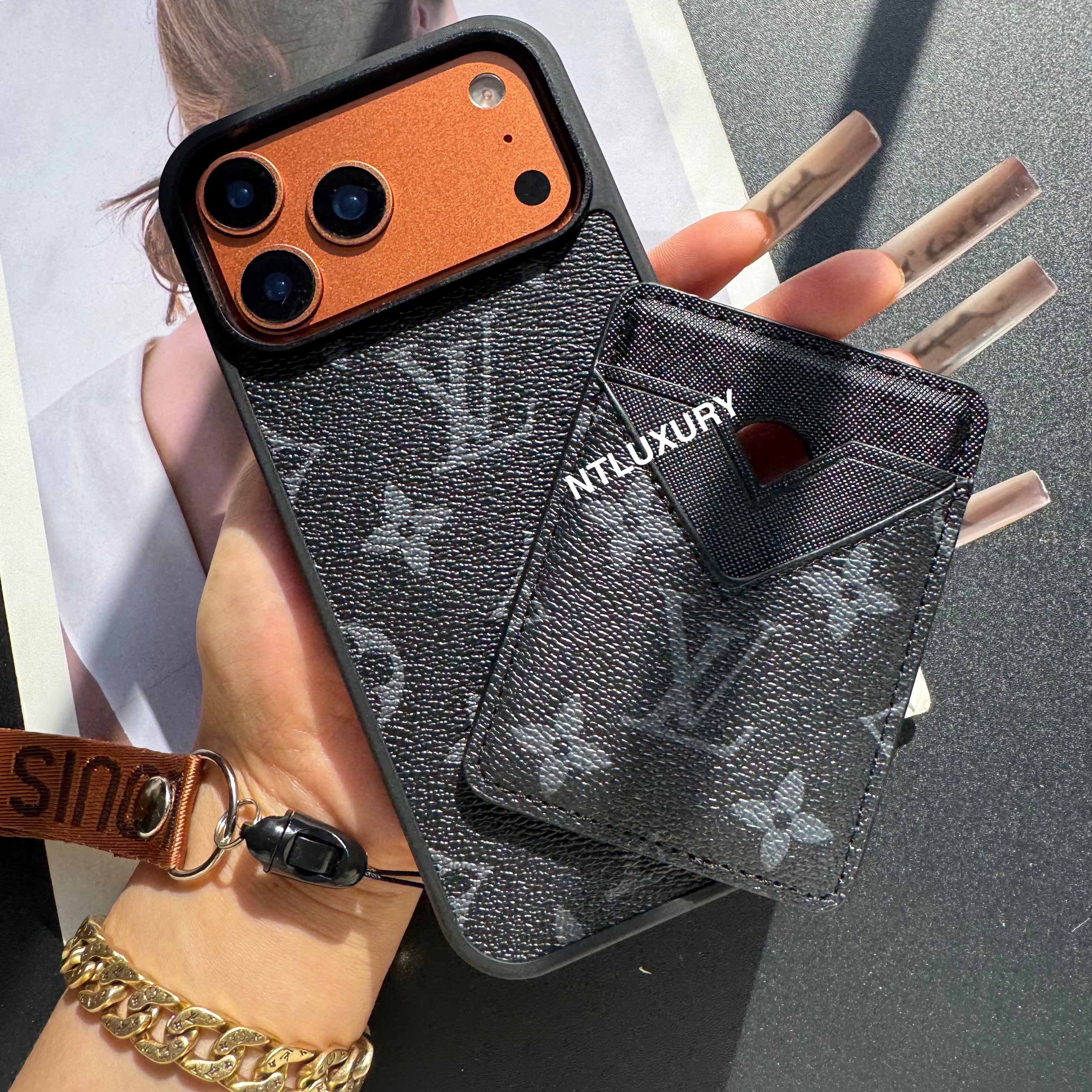 The card holder is magnetic, and the phone case is also magnetic. The phone case can be used separately from the card case or together.