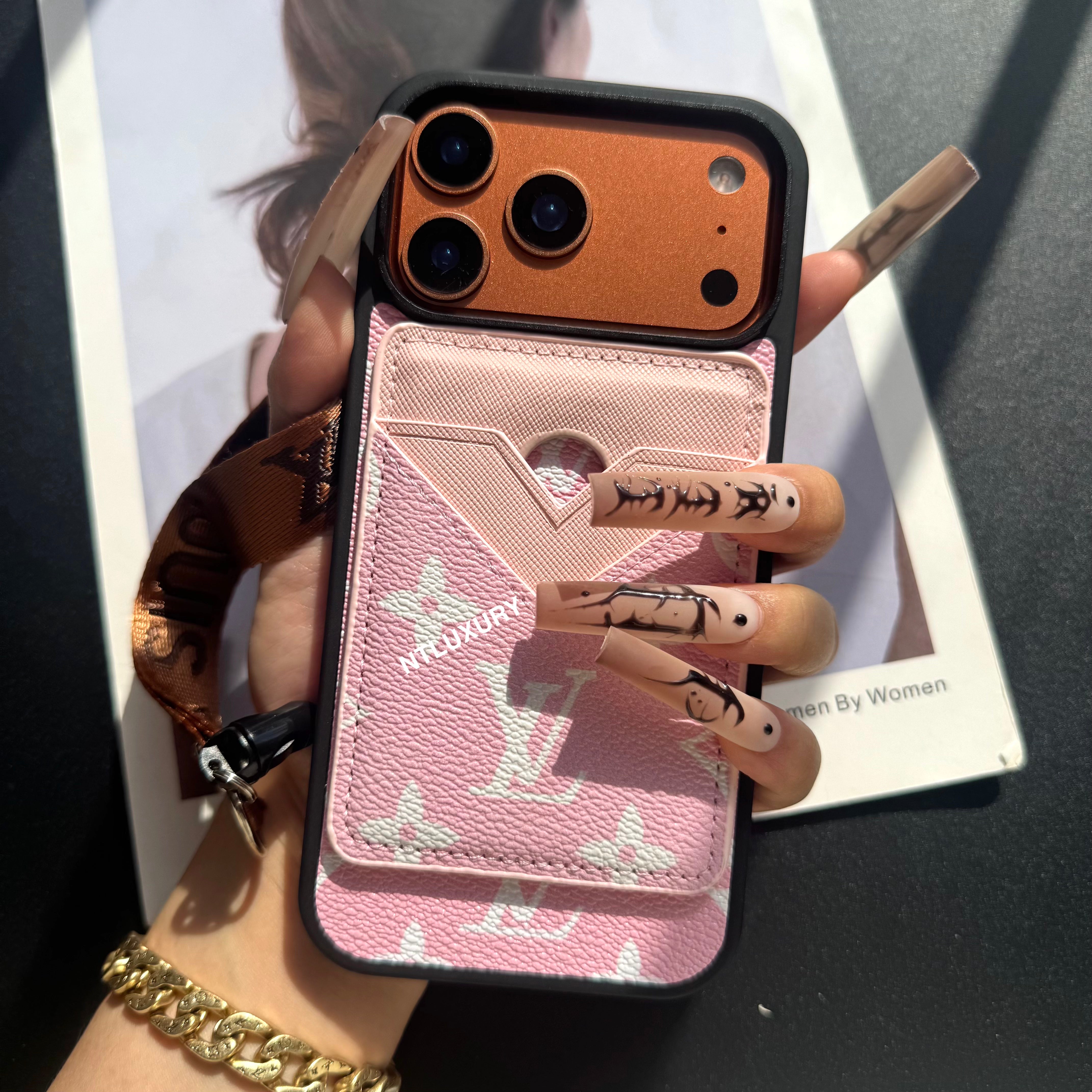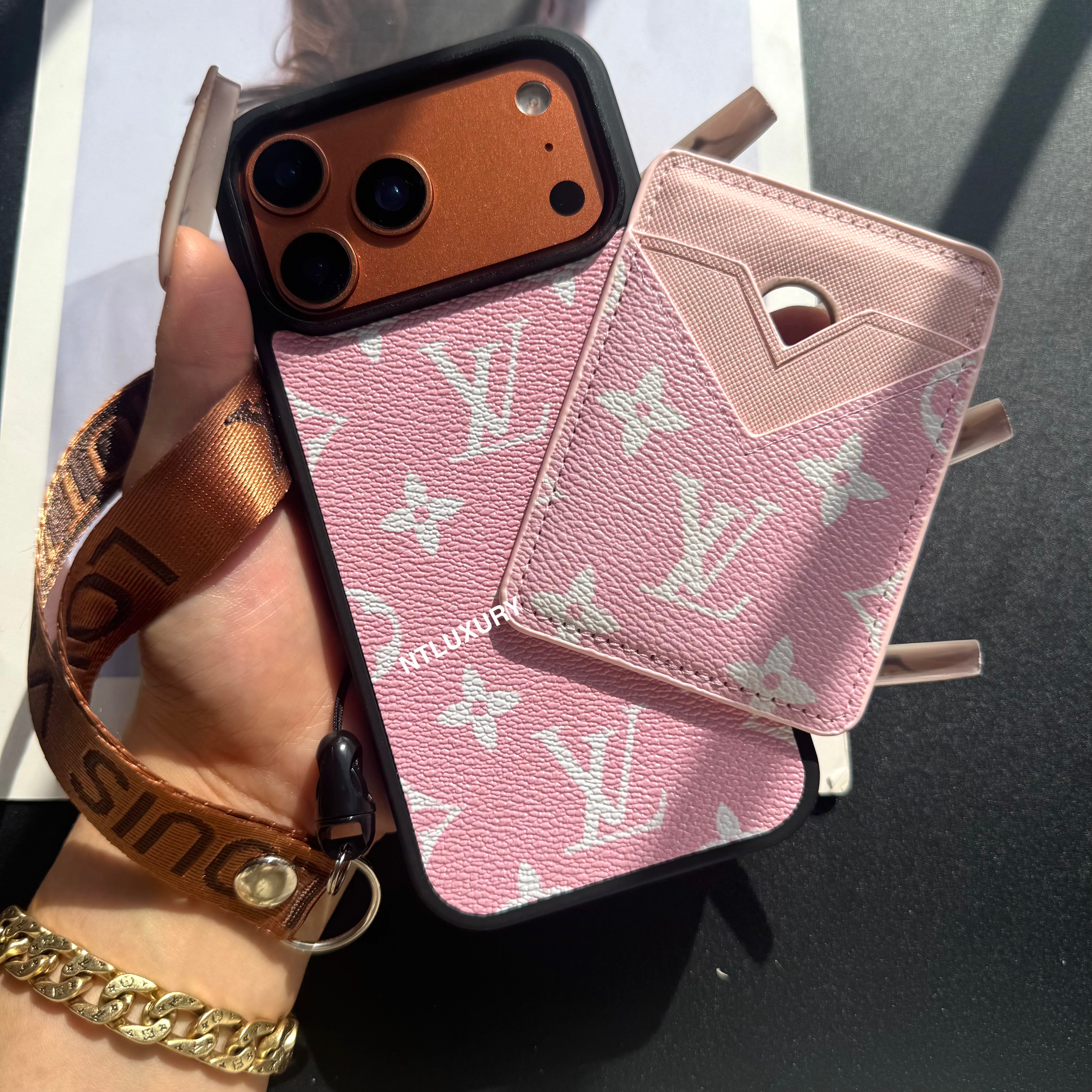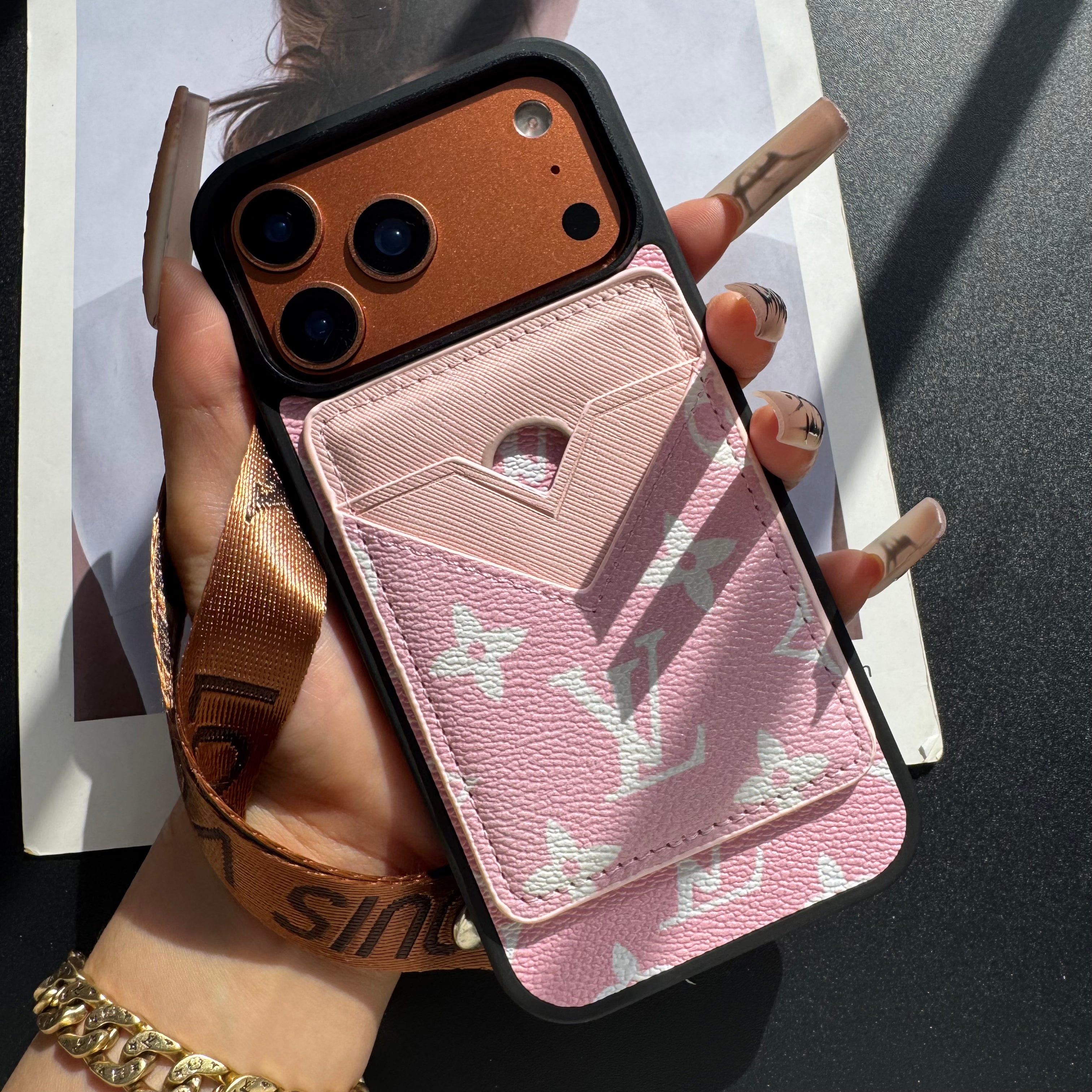 Magsafe Case with Magsafe Pocket 3 Set With Strap (Black & Pink)