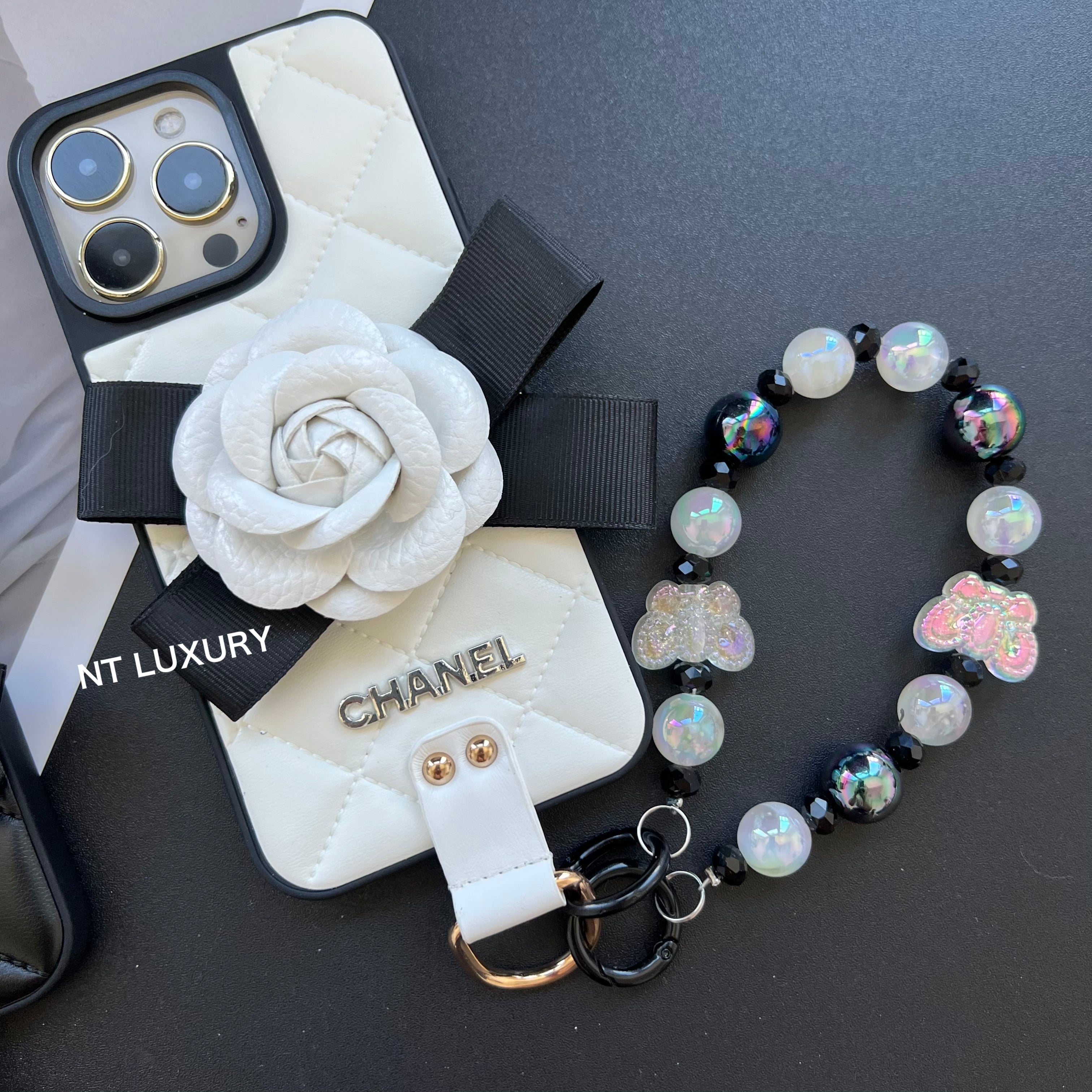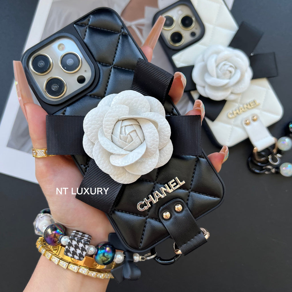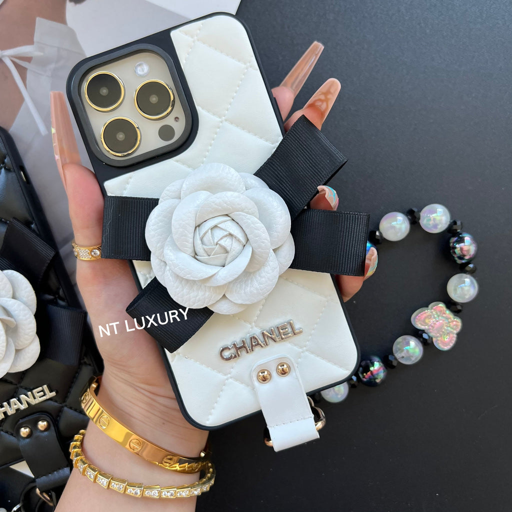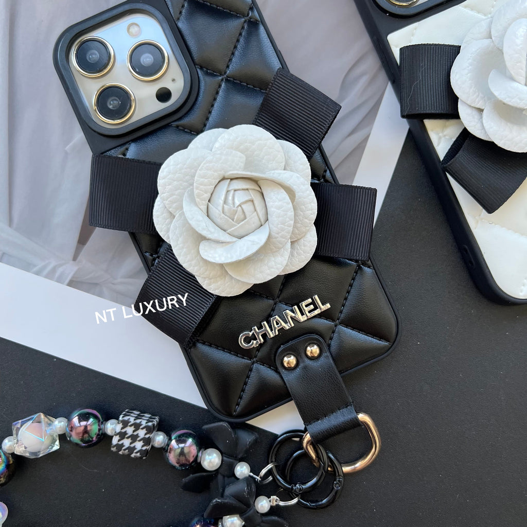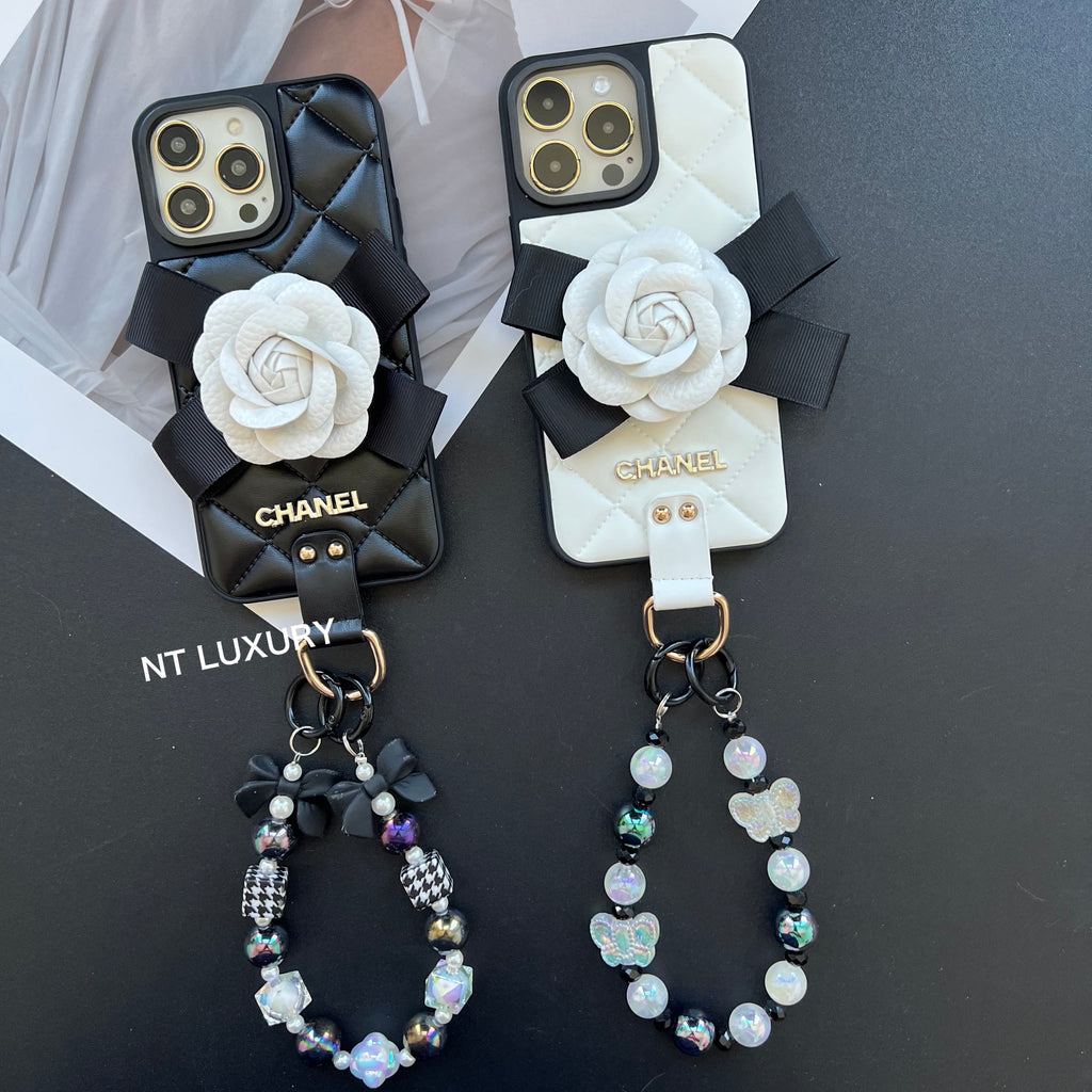 Flower Deco Girl Phone Case With Chain