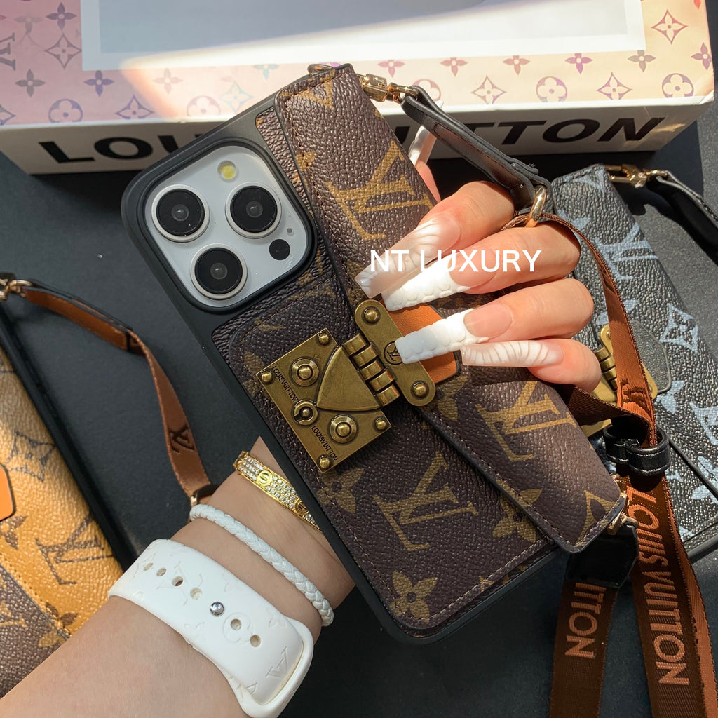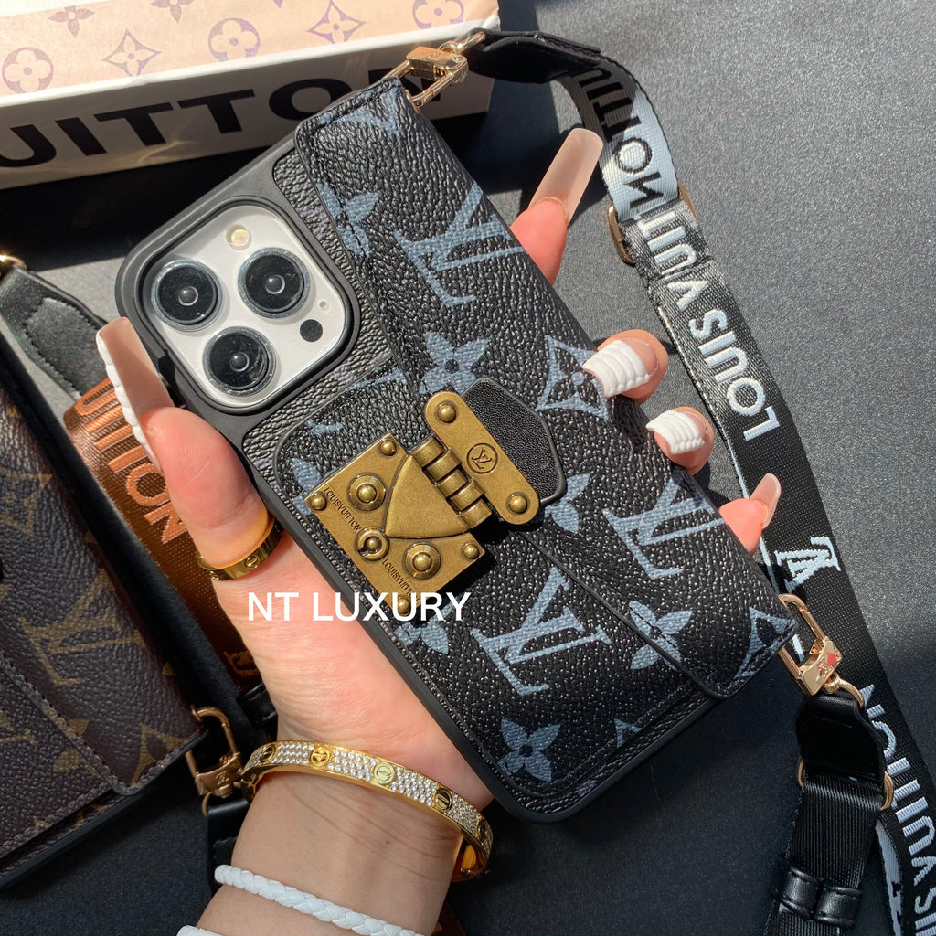 Unique Lock Design Phone Case with Card Pocket & Rope (3 Pieces)