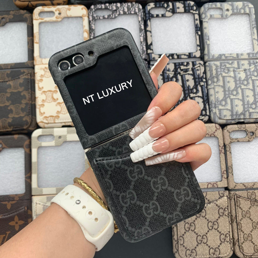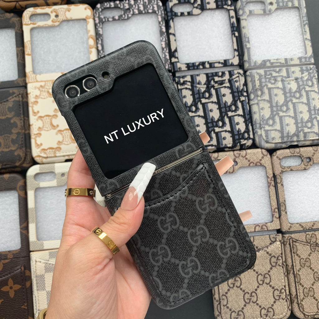 Vintage Floral Case For Z-Flip Series with Pocket (Black Good)